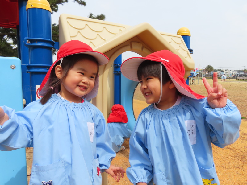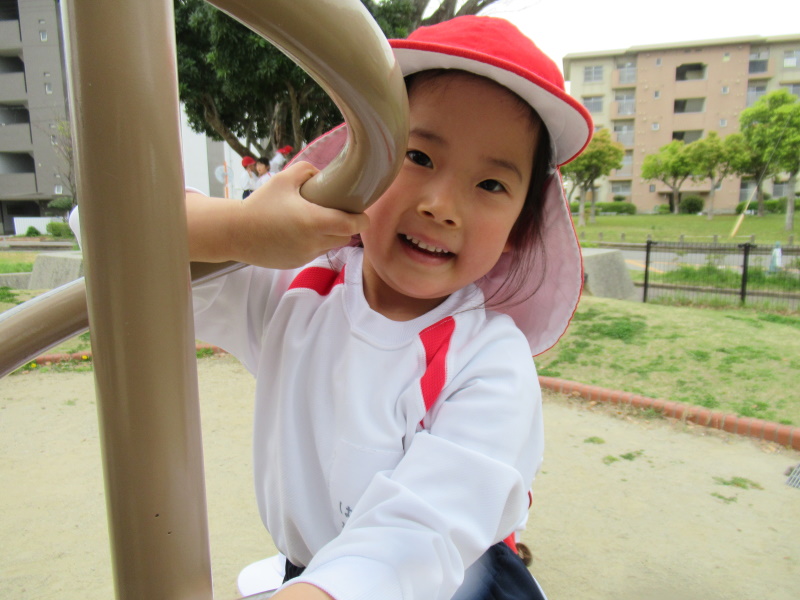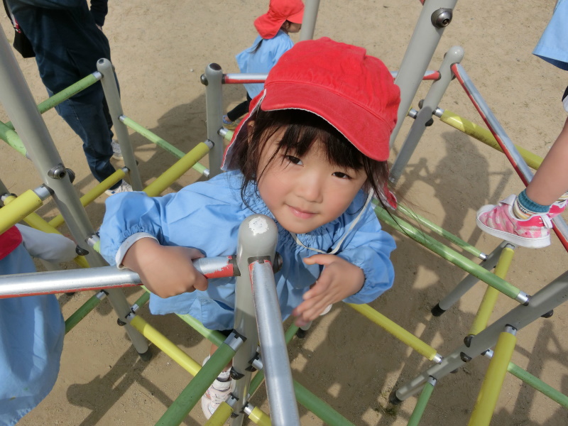 前回遊んだ遊具を覚えており、「先生、ここで遊ぼう!」と大はりきりの子どもたちでした。